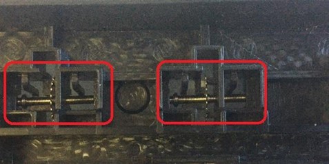 Esta es la vista frontal de los rodillos. Vistos desde la zona de salida de papel. Al salir, el papel impreso, pasa por debajo de los rodillos. Los rodillos se impregnan de tinta fresca y húmeda dejando puntitos, después, en zonas donde no hay impresión de tinta.