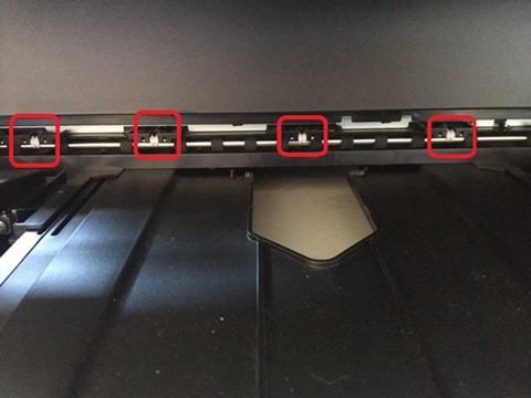 Estos rodillos de plástico son los principales causantes de las marcas. No se pueden quitar. Sí se pueden limpiar, con líquido limpiador para impresoras aplicado en un papel absorbente; límpielos a medida que los hace rodar; deje secar unos 15 minutos y vuelva a imprimir.