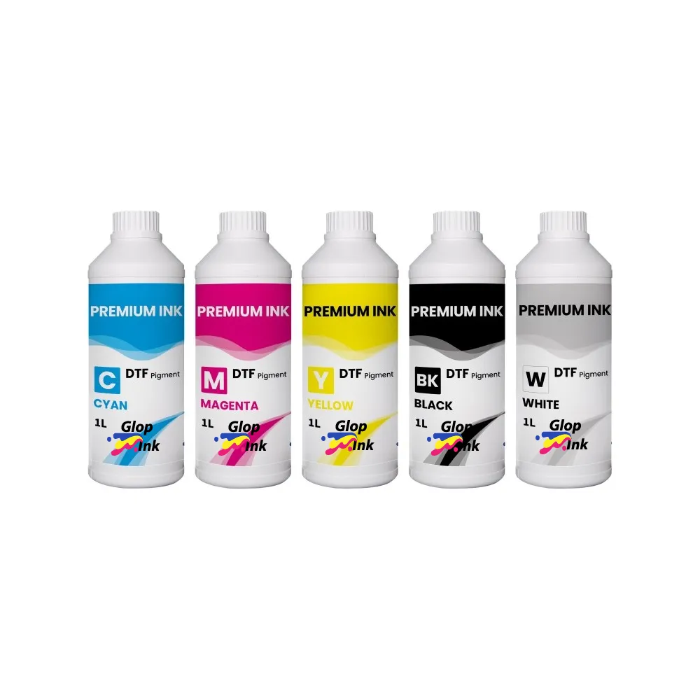 Las tintas DTF GlopInk están formuladas con tecnología de pigmento encapsulado, lo que permite una mejor estabilidad química, un flujo de tinta más uniforme y una mayor protección de los cabezales.