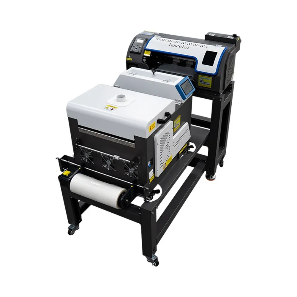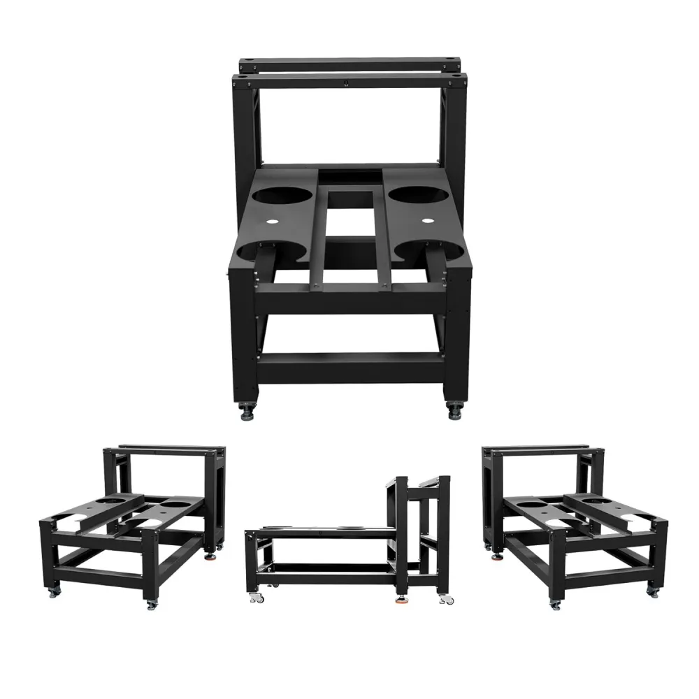 Ce meuble est conçu pour supporter les imprimantes DTF, les agitateurs de poudre et les fours de cuisson Lancelot, en les intégrant dans un seul poste de travail stable.
