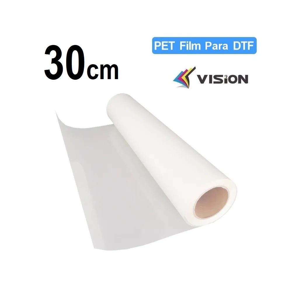 O filme de transferência DTF Vision de 30 cm é um filme de transferência direta PET híbrido que é impresso a frio, curado com calor e transferido por meio de prensa térmica. Ele incorpora um revestimento de polímero tratado que facilita uma transferência limpa, uniforme e resistente.