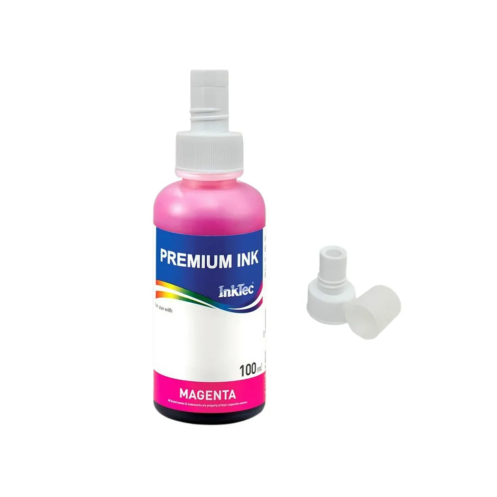 Frasco de 100 ml de tinta 102 magenta InkTec para reabastecer sistemas EcoTank em impressoras Epson.